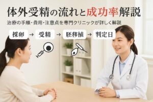 著者:森ノ宮アクア鍼灸治療院 「体外受精」と聞くと、「どんな流れで進むの?」「費用はいったいどれくらい?」と不安や疑問を感じていませんか。実際に日本で体外受精を受ける人は年間約7万人を超え、2021年には出生児のおよそ1…