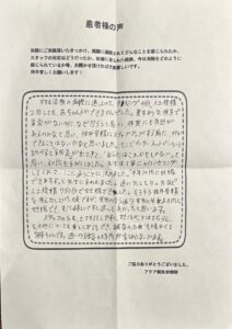 そこでインターネットでいろいろ調べると「鍼灸」が出てきて、「自分にはこれかもしれない」と思い、初診を予約しました。