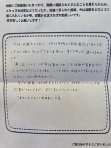 通い出してから、体質改善のために生活面や食事面などいろいろアドバイスを頂き、いつも明るく出迎えて頂けるスタッフの方々に沢山救われました。