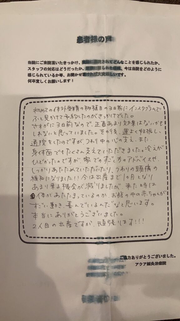 初めての体外受精の移植日の3日前に、インスタグラムでふと見かけて予約したのがきっかけでした。